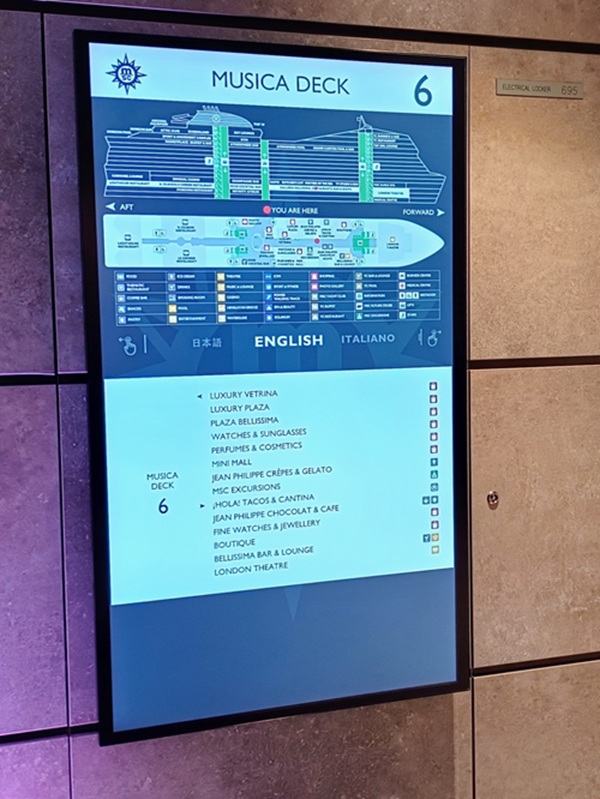 ベリッシマ船内探検②誰でも入れる公共施設♪~日本発着外国船MSCベリッシマお手軽沖縄クルーズー2024.11月・旅行記⑤-2