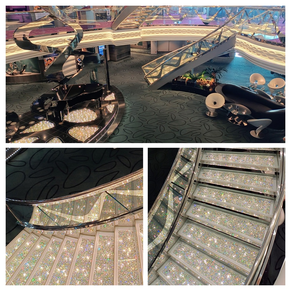 船の中央5F、スワロフスキーの階段が美しいアトリウム。