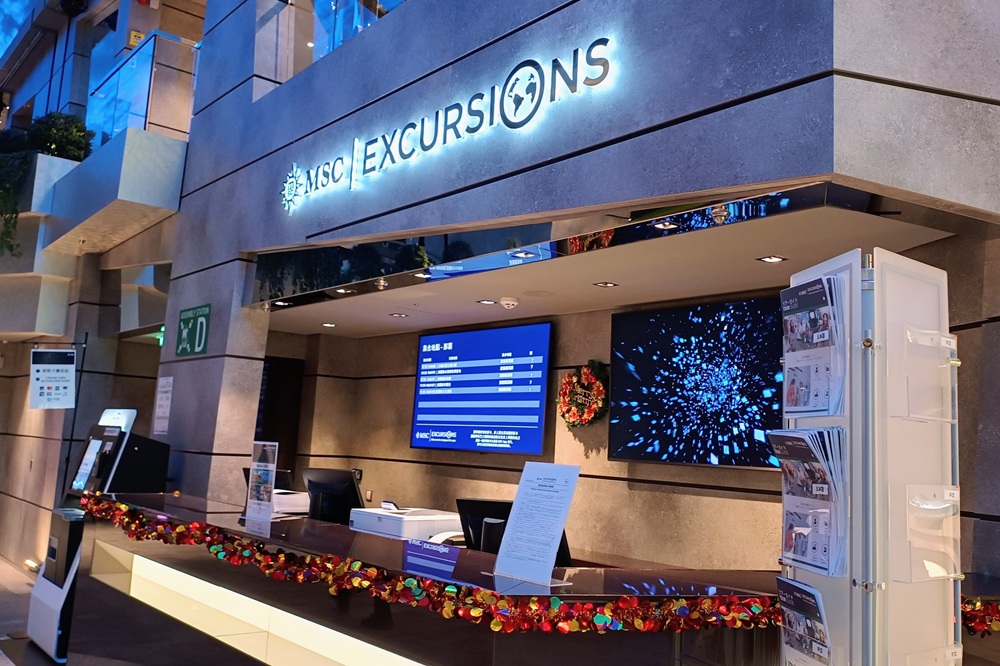 ジャンフィリップモーリーのアイスクリームのお店の前に6Fの寄港地観光デスクがあったと思います。