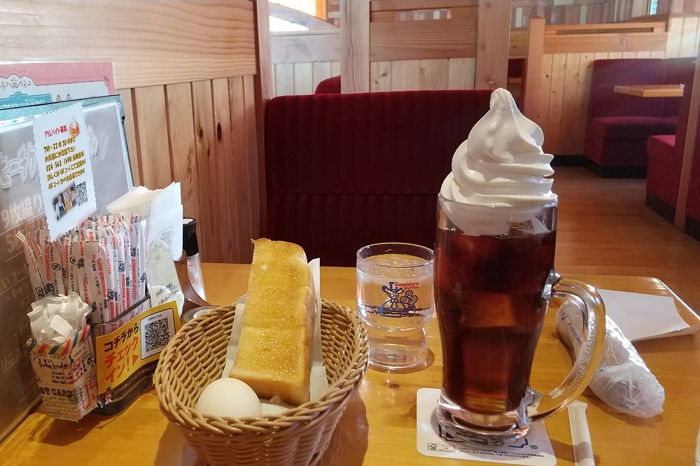 ドリンク注文でモーニングサービスが無料で受けられる、という王道喫茶店スタイルモーニングのコメダ