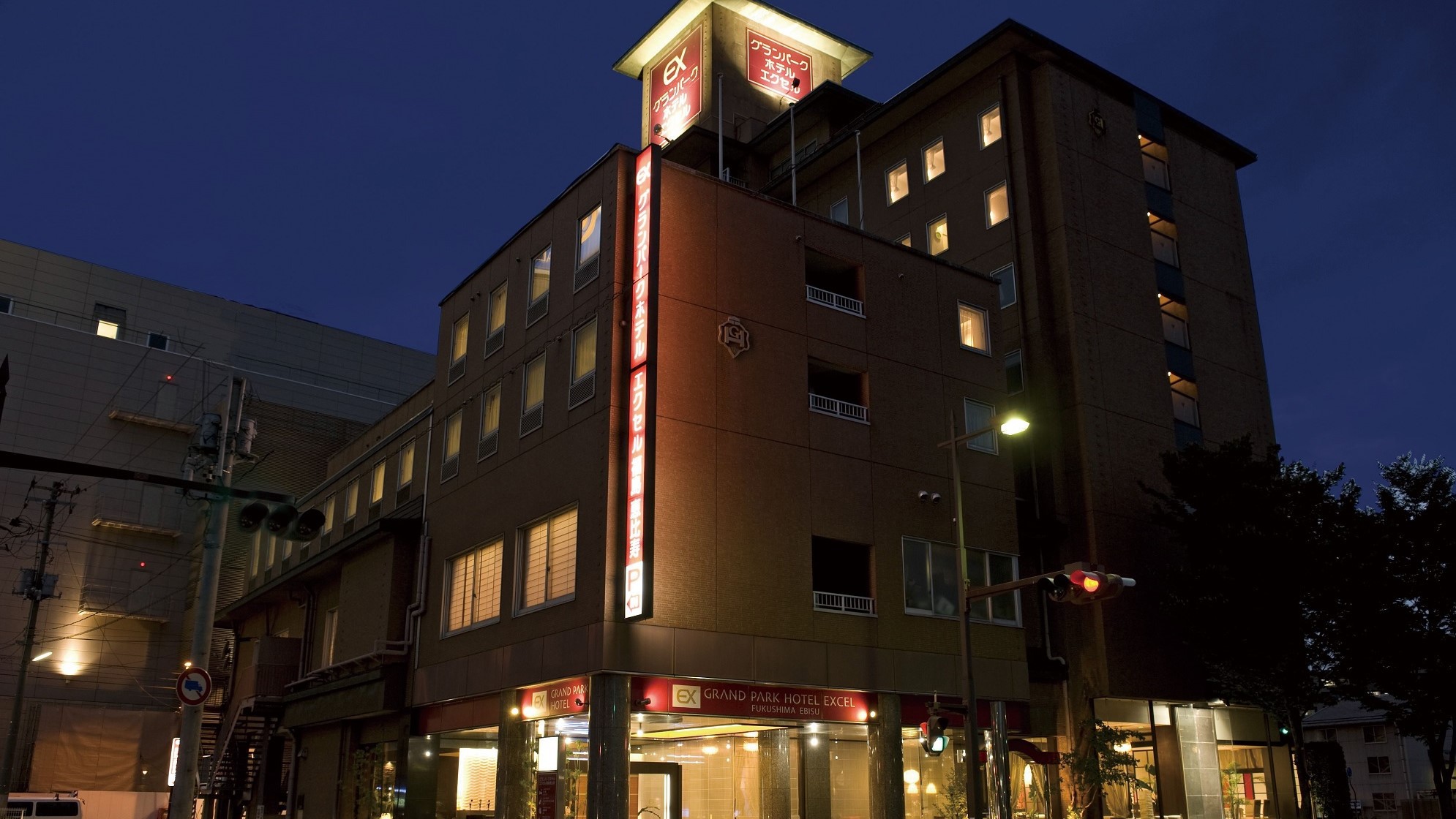グランパークホテルエクセル福島恵比寿、大浴場・サウナ(男性のみ)・宴会場を有する、福島駅東口のデザイナーズホテル。朝食は6時から営業、東北新幹線 福島駅東口から徒歩約4分、駐車場:専用駐車場無し。近隣のコインパーキングをご利用ください。